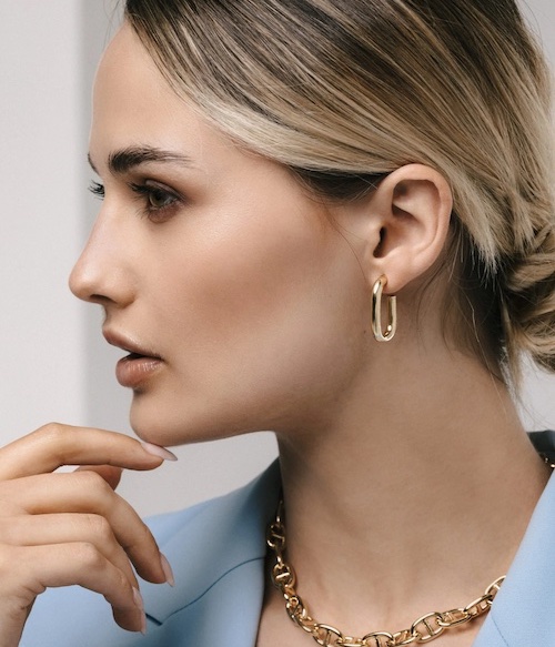 Al contrario, per un abito con una scollatura a barchetta, dove la scollatura si estende orizzontalmente, l’attenzione dovrebbe essere rivolta agli orecchini. Gli orecchini a cerchio sono particolarmente adatti in questo caso, poiché richiamano l’attenzione sul viso donando un tocco di brillantezza e dinamismo al tuo look. La loro forma rotonda può bilanciare l’ampiezza della scollatura offrendo un contrasto elegante.